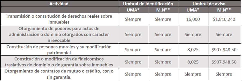 Umbral de aviso: Cuando en nombre y representación de un cliente, realice alguna operación financiera.