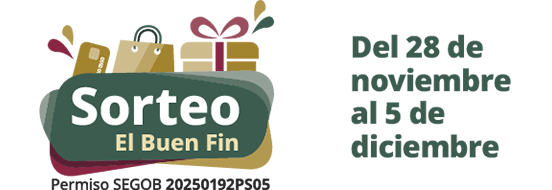 | 8 de diciembre de 2025 | Los listados de los tarjetahabientes y comercios ganadores serán publicados en el minisitio electrónico del Sorteo El Buen Fin 2025, que será localizado en los Portales oficiales https://www.gob.mx/sorteoelbuenfin y https://www.sat.gob.mx |